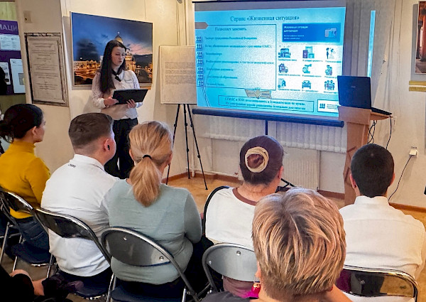 Специалист отделения МФЦ, принявший участие в мероприятии, в торжественной обстановке вручил ребятам паспорта и рассказал о возможностях получения государственных и муниципальных услуг на портале Госуслуг.